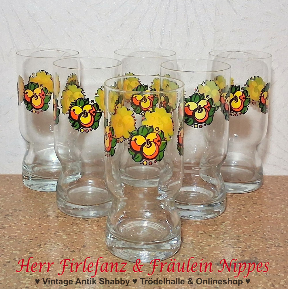 6 Vintage Gläser mit Obst Motiv