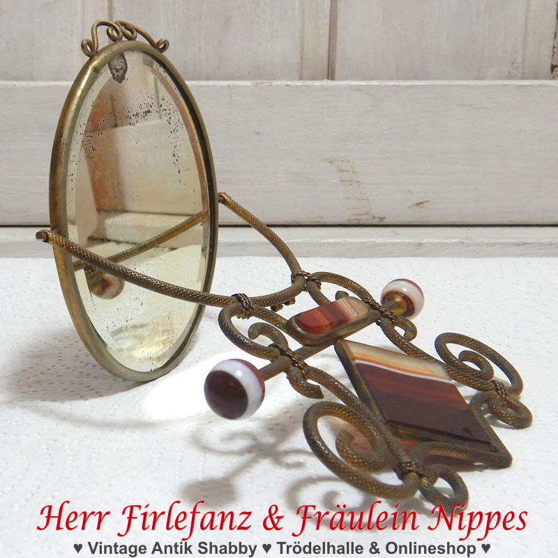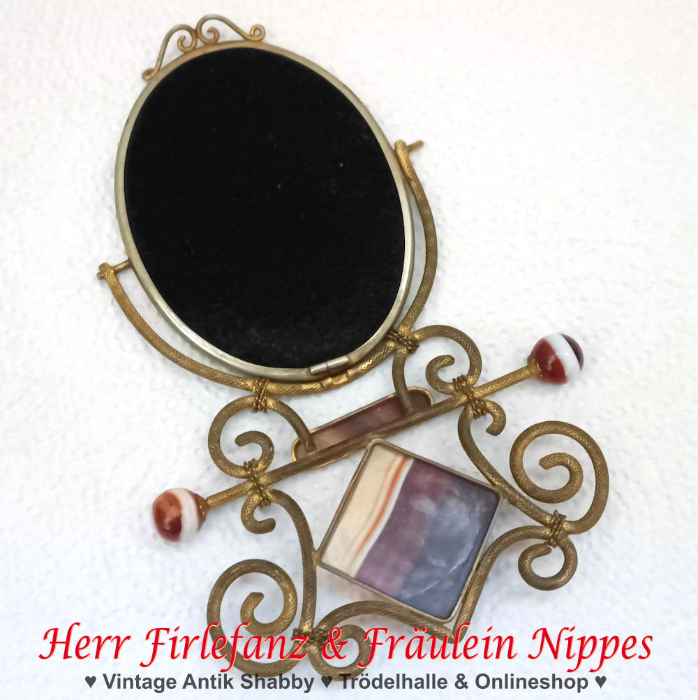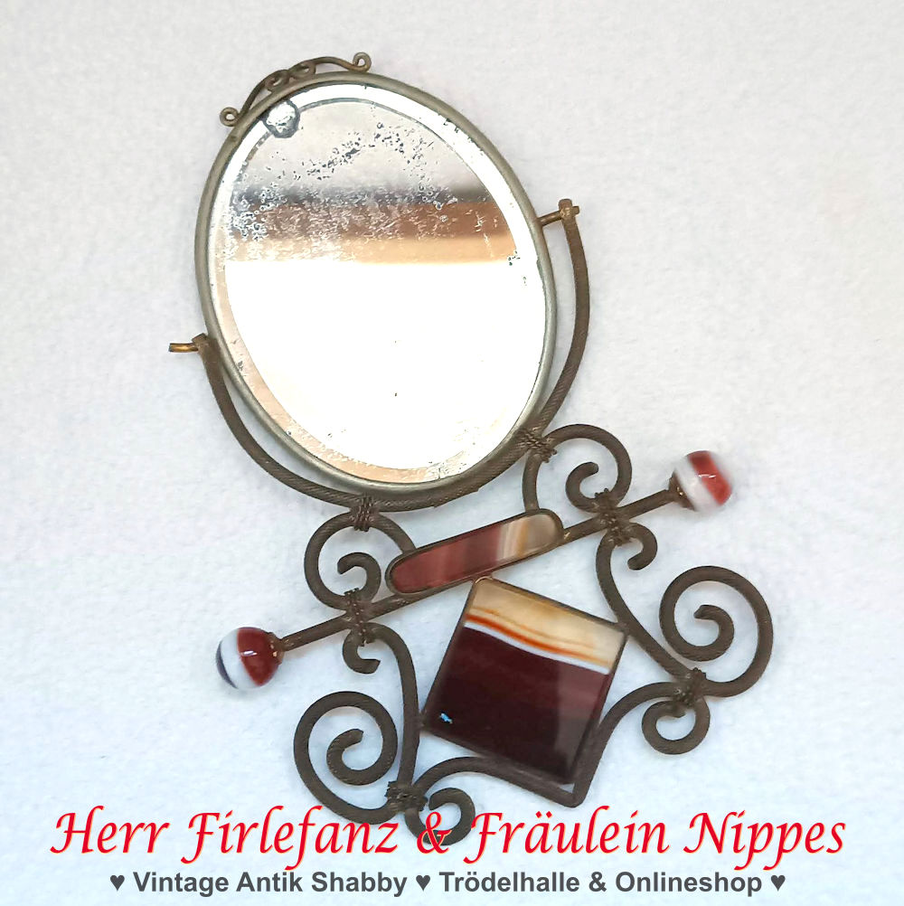 Der kleine ovale Spiegel (9cm x 6,5cm) kann in der Halterung gekippt werden.