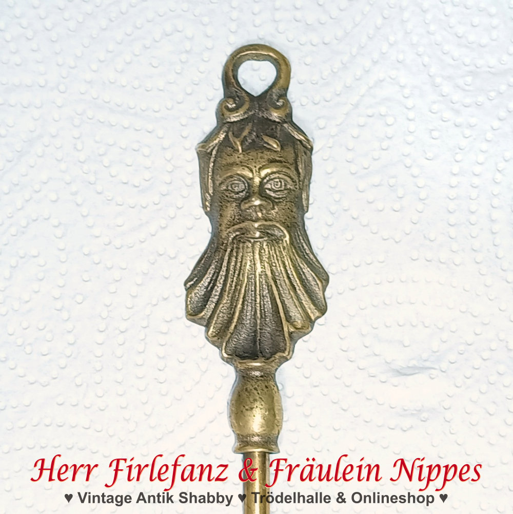 Am oberen Ende hat er als Verzierung einen Kopf oder auch Mann mit Bart als Relief und eine Öse zum aufhängen.
