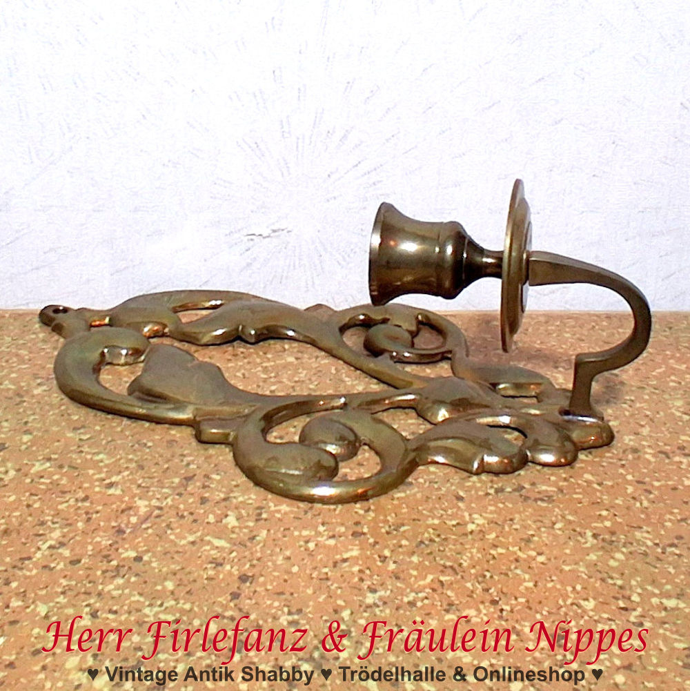 Dieser Kerzenhalter für die Wand ist goldfarben und aus Metall, insbesondere Messing, gefertigt.