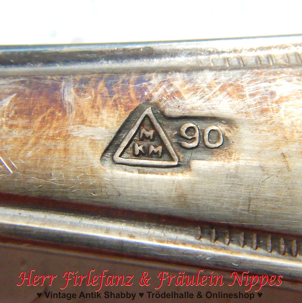 Die Gabeln, die Löffel und die Griffe der Messer haben einen 90er Silber-Stempel.