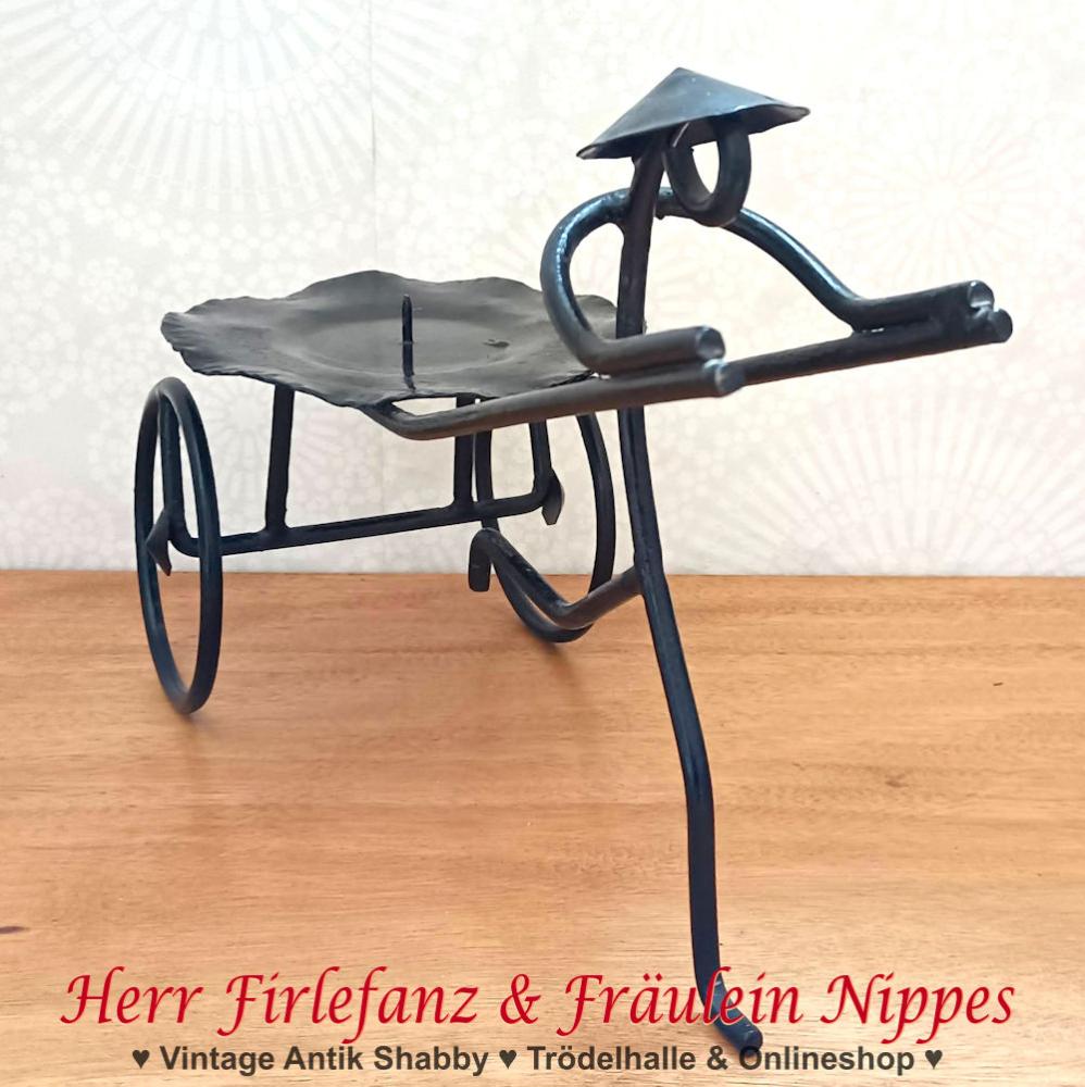 Der Kerzenhalter ist insgesamt ca. 33cm lang und der Rikschafahrer selbst ist ca. 22cm hoch.