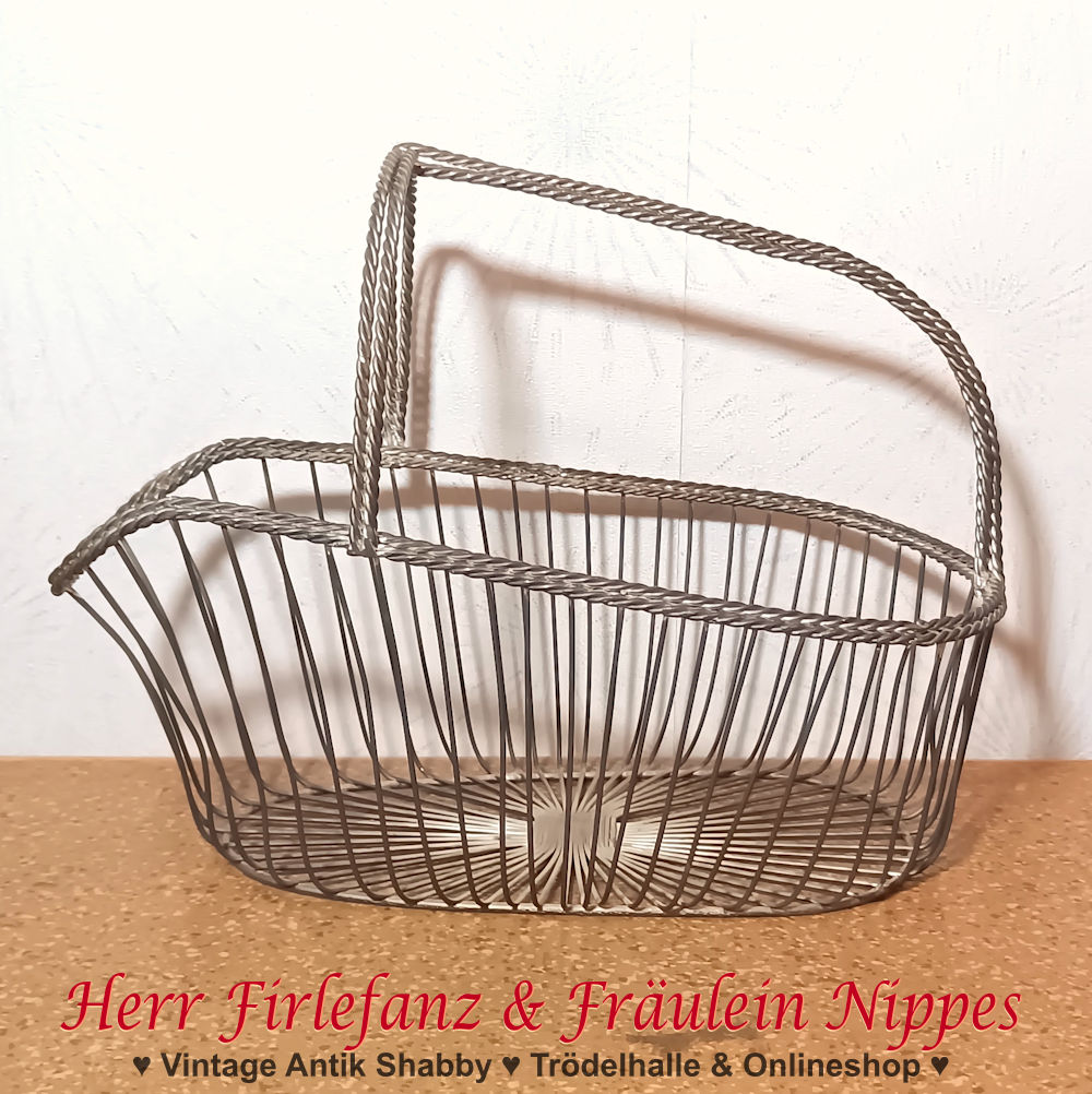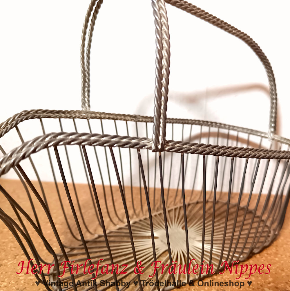 Dieser Flaschenhalter besteht aus einfachen und aus miteinander verdrehten Metallstäben aus Eisen.