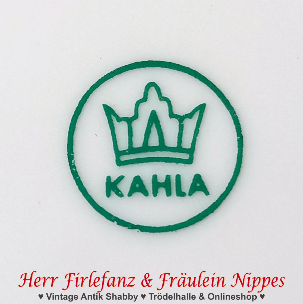 Die Porzellanteller aus DDR Zeiten haben ein Dekor aus grünen Weinranken, Weinlaub und Trauben.