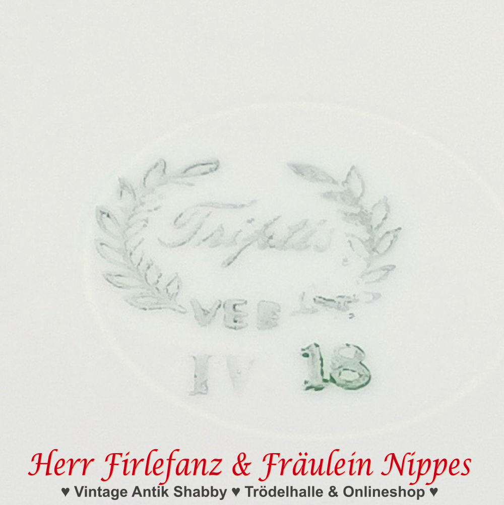 Diese Vintage Frühstücksteller aus DDR Zeiten sind aus weißem Porzellan gefertigt.