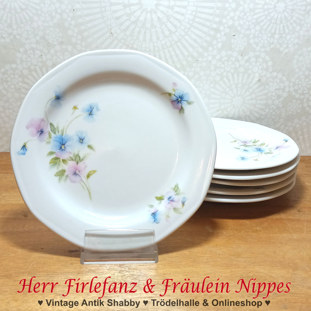 6 Frühstücksteller mit Stiefmütterchen (Atelier Porzellan)